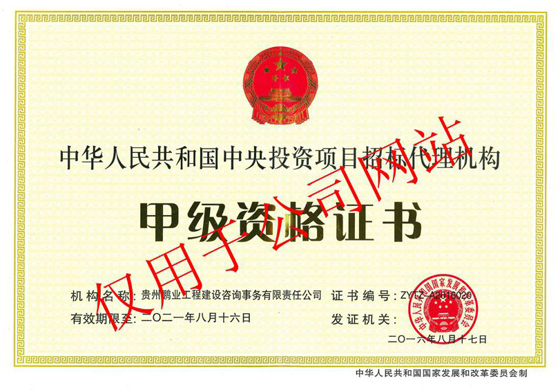 工程招標代理甲級、工程造價咨詢甲級、工程監(jiān)理甲級、中央投資項目招標代理甲級、政府采購代理甲級